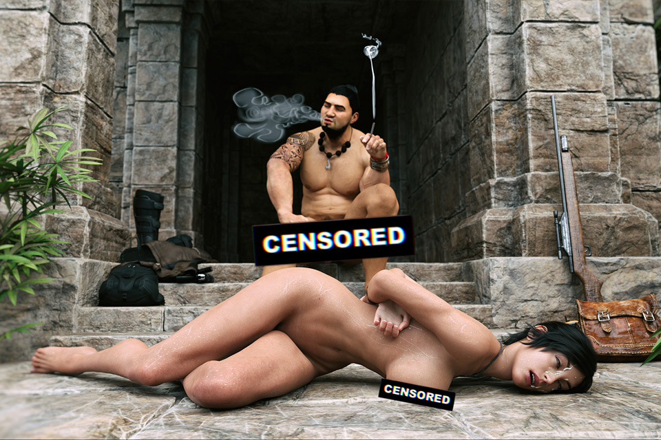 Amicia de Rune from A Plague Tale is stripped nude and restrained on all fours in a shadowy, torch-lit stone dungeon. A smirking guard ushers in a massive, aroused hound, announcing her “conjugal visit” before slamming the door shut. Left